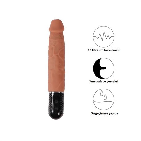 10 Titreşim Fonksiyonlu 17,5 cm Realistik Vibratör Gerçekci Penis Dildo