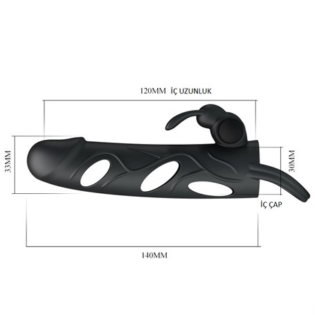 2 cm Uzatmalı Titreşimli Klitoris Uyarıcılı Zenci Penis Kılıfı