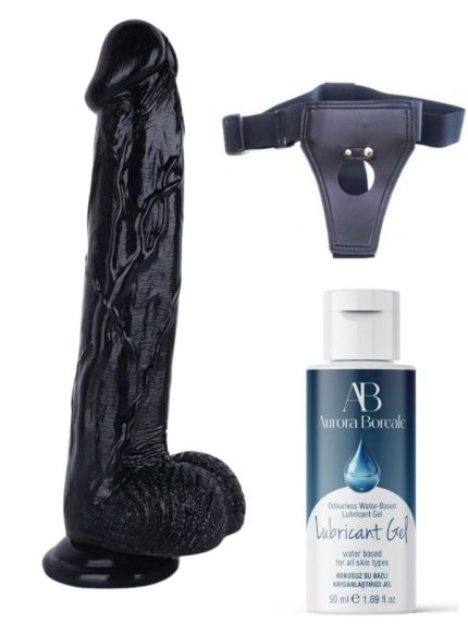 Belden Bağlamalı Kayganlaştırıcı Set Noctis 21,5cm Siyah Dildo No:51