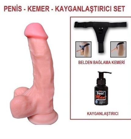 22,5 Cm Belden Bağlamalı Realistik Dildo Penis Set