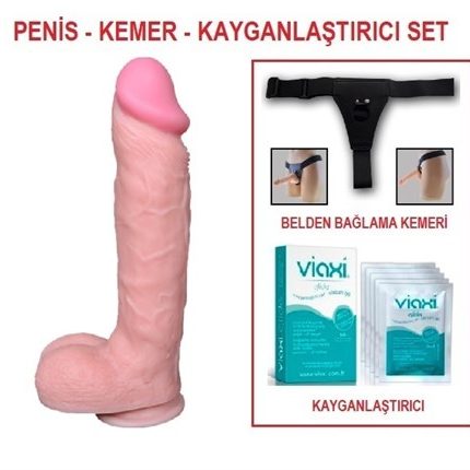 22,5 Cm Realistik Dildo Penis Belden Bağlamalı Set