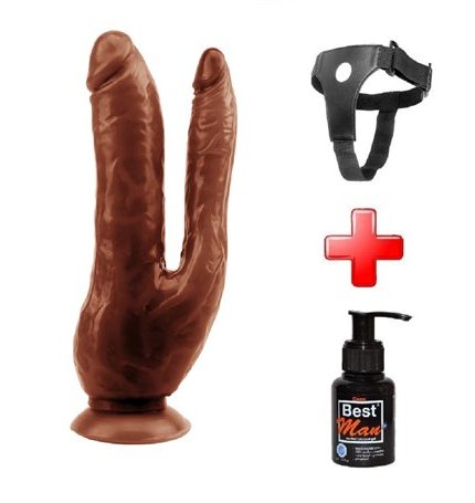Belden Bağlamalı İki Uçlu Vantuzlu Realistik Çatal Zenci Dildo Penis